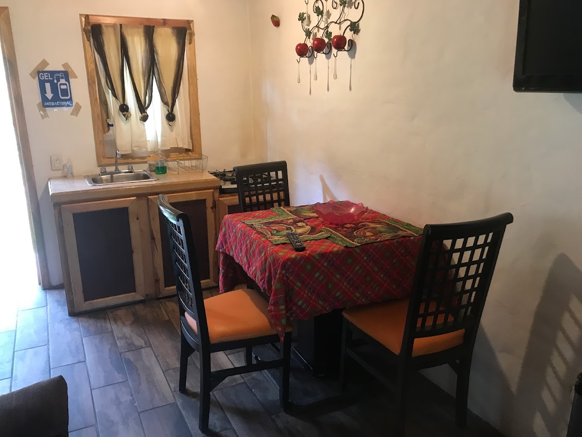 Excelente atención de la propietaria, espacios muy limpios, tiene lo básico que requiere una cocina, cuenta con Internet, muy poco espacio para estacionamiento, en algunas cabañas hay que bajar o subir bastantes escalones.